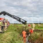 Na het aanbrengen van een veetakel, onder het paard door, kon het dier uit de sloot worden getakeld. Dit alles gebeurde onder grote belangstelling van de andere paarden die vanuit het weiland de bewegingen nauwgezet volgden. Hoe het dier in de sloot kon geraken is onbekend. Ogenschijnlijk heeft het paard geen verwondingen opgelopen.