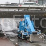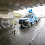 Het ongeluk gebeurde rond 13.15 uur. De bestuurder reed met zijn voertuig over de Olgerweg in de richting van de Kieler Bocht. De bestuurder schatte hierbij de hoogte verkeerd in. De arm van de hoogwerker bleek te hoog te zijn waardoor het voertuig tegen het viaduct knalde. Hulpdiensten waren snel ter plaatse. De bestuurder is gewond geraakt en is behandeld door ambulancepersoneel. Daarna is de persoon met onbekende verwondingen overgebracht naar het ziekenhuis. Een bergingsbedrijf heeft de hoogwerker weggesleept. Aan het viaduct ontstond lichte schade.